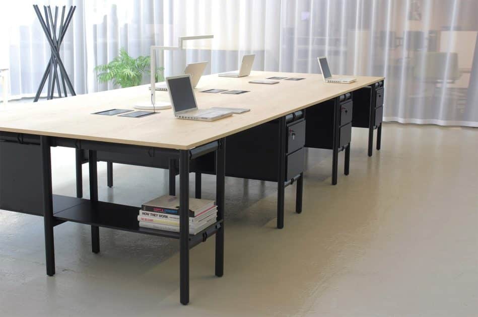 The DAN Meeting Table embraces the shift towards more flexible, informal workspaces and is designed with the sole purpose of creating enjoyable, multifunctional working environments. DAN is a modular collection, with construction based on traditional Japanese joinery. The collection features solid ash wood ladders and beams, connected with aluminium parts, and is named DAN after the ladder system used in Japanese martial arts.